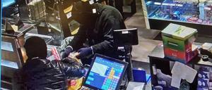 Ein maskierter Täter kam kurz nach Ladenschluss und schlug einem Mitarbeiter mit einer Schusswaffe auf den Kopf. Er erbeutete Bargeld und konnte mit einem Komplizen flüchten.