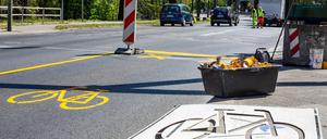 Zu Beginn der Pandemie baute der Bezirk mehrere Pop-up-Radwege, unter anderem am Kottbusser Damm, wo vorher Parkplätze waren. Jetzt werden sie verstetigt.