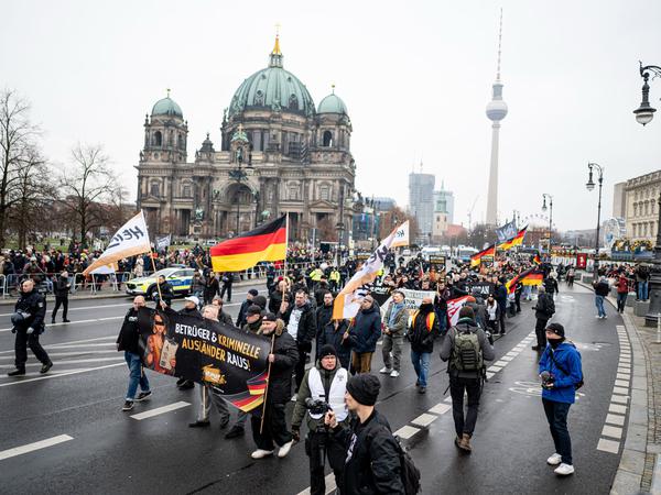 „Die gemeinsame Mobilisierung kommt nicht überraschend und ist auch das Ergebnis einer immer stärkeren Annäherung”, schreibt die Mobile Beratung gegen Rechtsextremismus Berlin (MBR) in einer Einschätzung. Die DJV sei über einen längeren Zeitraum gezielt von Die Heimat umworben worden – „auch, weil die von politischer Irrelevanz bedrohte Partei dringend Nachwuchs sucht“, heißt es weiter. (mit dpa)