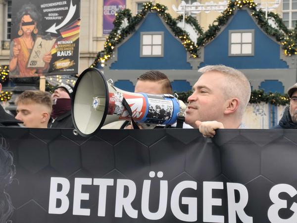 Im Gespräch mit der Polizei bei der Demonstration empörte sich „Heimat“-Chef Schreiber darüber, dass die Polizei den Weg für die Neonazi-Demo nicht frei mache. „Wären wir auf uns alleine gestellt, würden wir uns schon Raum schaffen“, sagte Schreiber kurz danach dem Tagesspiegel. Die Neonazi-Partei „Die Heimat“, früher NPD, hatte die Demonstration angemeldet.