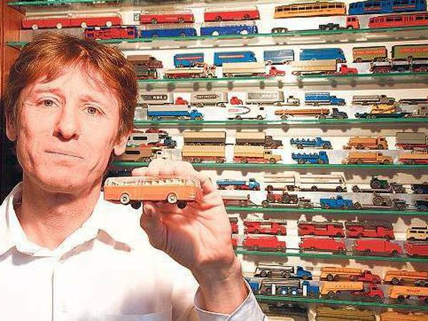 Werner Behnke beugt sich über eine Glasvitrine und betrachtet den feuerroten Käfers, links außen in der Parkreihe. „Man möchte da wieder einsteigen“, sagt er. Doch dieser Wagen ist gerade mal so lang wie ein Streichholz. Maßstab 1:90. Er passt in etwa zur elektrischen HO-Eisenbahn, ist ein Sammlerobjekt, hergestellt vor knapp fünfzig Jahren im Steglitzer Ortsteil Lichterfelde-West. Dort befand sich bis Mitte der 80er Jahre Berlins größter Fahrzeughersteller, jedenfalls was die millionenfachen Stückzahlen betrifft. Es war zugleich eine der bekanntesten und in Sammlerkreisen beliebtesten Miniatur- Autofabriken Europas. Bis heute gehört die Fahrzeug- Flotte der Marke „Wiking“ zu den Klassikern unter den Modellautos. Jetzt sind die Wiking-Autos für eine Weile wieder nach Lichterfelde- West zurückgekehrt.