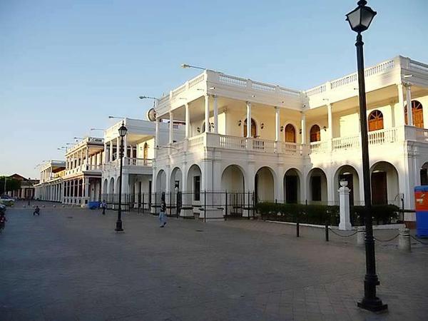 Es ist genauso hübsch wie versprochen. Ein Marktplatz , ein paar Kirchen, fast alle Häuser sind in Pastellfarben gestrichen. Das erinnert mich in seiner Farbigkeit schon fast an die Bilder unsere Künstler. Überall sitzen Leute in Sesseln vor ihren Häusern und plaudern, Musiker tingeln von Café zu Café. Amerikanische Touristen werden aufdringliche Straßenhändler nicht mehr los. Wir landen in einem majestätischen Café im Kolonialstil, mit schönen gekachelten Innenhöfen und opulenten Springbrunnen.