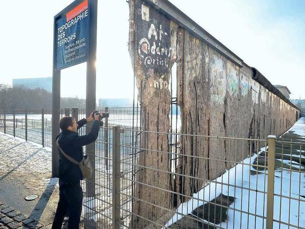Dort haben wir die ganze Geschichte beisammen: Das Gelände der Topographie des Terrors, wo sich Gestapo, SS, SD und das Reichssicherheitshauptamt befanden. Nebenan die originale Mauer. Und dann das Finanzministerium, in dem zu Nazi-Zeiten Hermann Göring saß und später DDR-Ministerien unterkamen, wo Ulbricht log und wo am 17. Juni das Volk aufstand, bis die Sowjetpanzer rollten. „Welche Straße in dieser Stadt hat mehr erlebt?“, fragt Paolo seine Italiener. Und antwortet gleich selber: „Keine!“