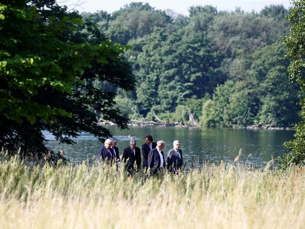 Minister am See. In der Villa Borsig am Tegeler See müssen die Außenminister der sechs Staaten, die einst die EU-Vorgängerorganisation EWG gegründet haben, sich mit den schweren politischen Fragen beschäftigen. Wie schön, dass man bei diesem Wetter einen kleinen Spaziergang am See machen kann. Einen kühleren Kopf bekommt man bei diesen Temperaturen allerdings nicht.