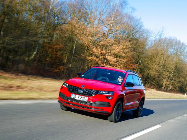 Skoda folgt bei der Leistung der spanischen Schwester Seat mit ihrem baugleichen 190-PS-Ateca. Deshalb gibt es den 4,38 Meter langen Karoq jetzt ebenfalls mit dem 190 PS starken Turbo-Benziner, der 320 Newtonmeter maximales Drehmoment zu bieten hat. Samt serienmäßigem Siebengang-Schaltgetriebe und Allradantrieb bleibt dieses Triebwerk innerhalb der Modellreihe exklusiv dem neuen Topmodell Karoq Sportline vorbehalten. Der Einstiegspreis für diese neue Topmotorisierung beträgt 36.420 Euro. Gegenüber dem vergleichbaren Karoq Sportline mit Siebengang-Schaltgetriebe und Allradantrieb sowie 1,5 Liter großen und 150 PS starken Turbo-Benziner ergibt sich ein Aufschlag von 1600 Euro. Die Unterschiede in den Fahrleistungen? Der 40 PS schwächere Karoq ist mit 196 km/h nur 15 km/h langsamer, und er beschleunigt von Null auf 100 in 9,1 Sekunden, damit braucht er 2,1 Sekunden mehr.