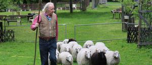 Seine 16 Schafe sind hauptberuflich als Landschaftsgärtner unterwegs: Schäfer Martin Haesner pflegt mit seiner Herde einen alten Bauerngarten in Lankwitz. Auch in der Grundschule nebenan sind die Tiere gerne gesehen.