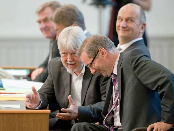 Markov betonte, dass die Regierungskoalition für die BER-Vorsorge „nicht woanders gekürzt“ habe. Sicher würde man das Geld lieber anders ausgeben, sagte Markov. „Aber wir können das größte Infrastrukturprojekt nicht an die Wand fahren.“ Dann würden Landesbürgschaften über 800 Millionen Euro fällig. Gleichwohl gebe das Land mehr Geld für rot-rote Prioritäten wie Wissenschaft und Bildung aus, nehme ab 2014 erstmals planmäßig keine neuen Schulden mehr auf. Platzeck bedauerte Mehrausgaben, nannte aber jeden investierten Euro in den Flughafen „gut angelegtes Geld“, es werde refinanziert, „auch wenn es länger dauert“. Die BER-Krise lässt die Koalitionäre von SPD und Linke enger zusammenrücken. Platzeck signalisierte erstmals offen, dass er Rot-Rot nach der Landtagswahl 2014 fortsetzen will.