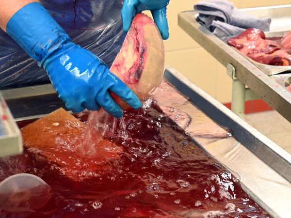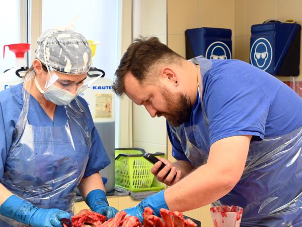 Um Fehler auszuschließen, gilt in der Gerichtsmedizin das Vier-Augen-Prinzip. Zum Ende der Obduktion kommt eine weitere Rechtsmedizinerin dazu. Möller zeigt und erläutert, was er herausgefunden hat.