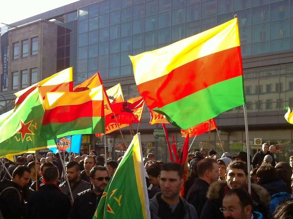 Gelb, rot und grün knatterten die Flaggen der kurdischen Region Rojava im Neuköllner Wind. Auch am Sonnabend hatten Kurden, wie so oft, eine Demonstration von Neukölln nach Kreuzberg angemeldet, eigentlich in Solidarität mit den Opfern des Krieges in der nordsyrischen, von Kurden dominierten Region. Doch mit dem Terroranschlag von Ankara am Vormittag gewann die Kundgebung unvermittelt an Aktualität.