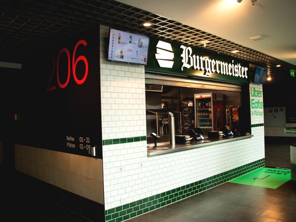 Die Fläche wird im charakteristischen Burgermeister-Design betrieben und von Levy, dem Catering-Partner der Arena, bewirtschaftet. Das Personal wurde demnach von Burgermeister geschult und verarbeitet Zutaten aus eigener Produktion. Die Fläche befindet sich auf der Ostseite des Umlaufs hinter Block 206. Zusätzlich wurde ein Pick-up-Point für Lieferfahrer von Uber Eats eingerichtet.