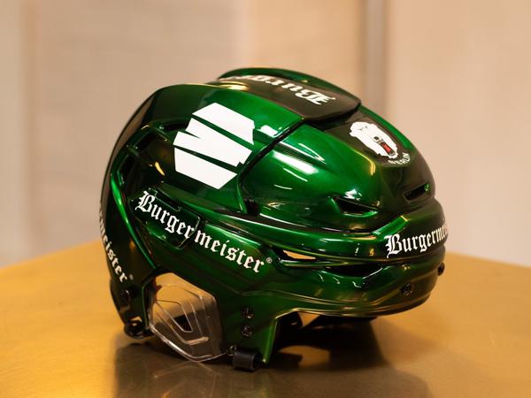 Die Eisbären Berlin und das Gastro-Unternehmen Burgermeister schmieden ein Bündnis. So sieht der neue Helm des elfmaligen deutschen Meisters aus.