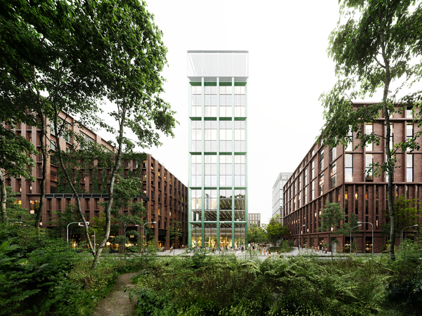 Und dass Abriss und Neubau CO₂ freisetzen? „Wir hätten ihn auch umgenutzt“, sagt Keßels, „aber das Gebäude ist zu tief, die Belichtungssituation problematisch.“ Überhaupt: „Trotz der getönten Glasfassade heizt sich das Gebäude auf, deshalb hat es eine große Klimaanlage auf dem Dach. Das ist eine Energieschleuder.“
