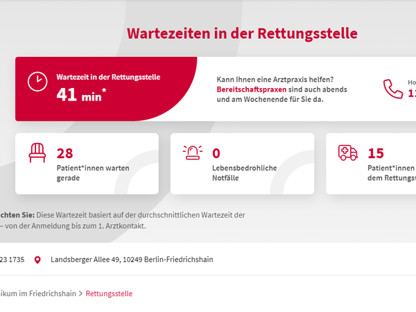 Die Rettungsstellen der Republik sind überlaufen, der Berliner Klinikbetreiber Vivantes antwortet darauf mit einem Wartezeitenmonitor: Seit Donnerstag können Menschen online in Echtzeit einsehen, wie lange die Wartezeit beträgt und wie viele Notfälle sich in Behandlung befinden.