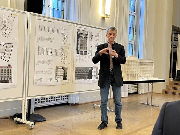Am Donnerstagmorgen stellten Bausenator Christian Gaebler (SPD), Senatsbaudirektorin Petra Kahlfeldt, der Geschäftsführer der landeseigenen Wohnungsgesellschaft WBM Lars Dormeyer und der Juryvorsitzende Vittorio Magnago Lampugnani die Siegerteams vor, die für die ersten drei Lose des neuen Quartiers am Molkenmarkt ausgewählt wurden. Seit Montag hatte das Preisgericht getagt. Alle Redner:innen betonten die durchweg hohe Qualität der eingereichten Arbeiten.
