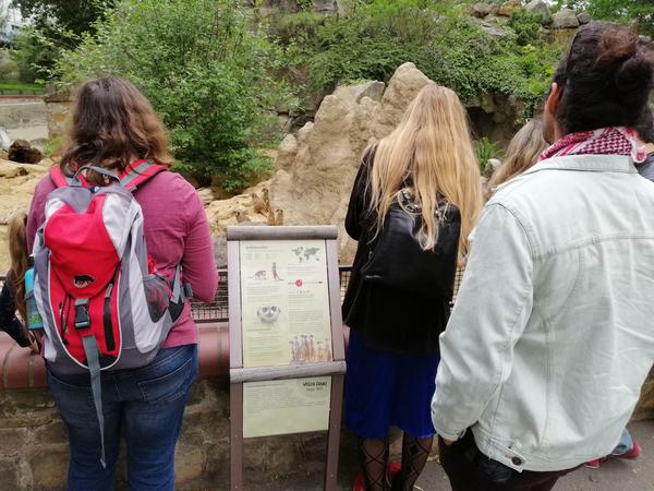 Es ist genug Platz für alle im Zoo, selbst der Gebirgspfad am Bärengehege ist jetzt kein Engpass. Dennoch kommt es vor einigen Gehegen zu Pulkbildungen. Die Erdmännchen sind einfach „zu süß“, wenn sie Männchen machen, sagte eine junge Frau. Da muss sie die Lücke am Geländer einfach kurz zum Fotografieren nutzen – die Corona-Hinweisschilder bleiben unbeachtet.
