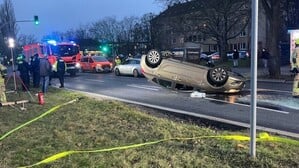 Bei einem Unfall ist ein Auto so stark vom anderen getroffen worden, dass es sich um 180 Grad drehte und auf dem Dach liegenblieb. Wie durch ein Wunder wurde der Fahrer nur leicht verletzt.