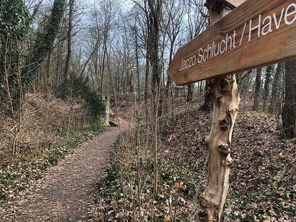 Und jetzt ein Berliner Rätsel: Diesen Turm sieht man immer aus dem BVG-Bus, wenn man von der Heerstraße nach Berlin-Gatow fährt – kurz hinter der Havelklinik auf der linken Seite: der „Jaczoturm“. War das mal ’ne Burg? Darüber hat jetzt der Tagesspiegel-Newsletter für Berlin-Spandau berichtet. Ein unscheinbarer Spazierweg führt in die „Jaczo-Schlucht“ hinab zum Havelufer. Das Türmchen mit den 13 Zacken steht am Wegesrand im Schatten. Davor: Sitzbänke.