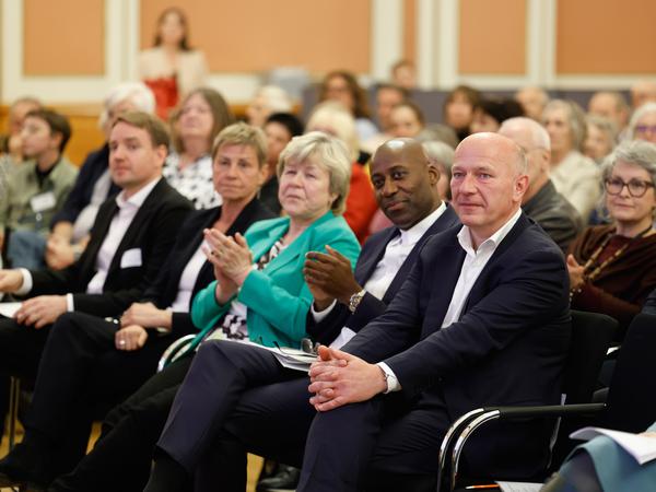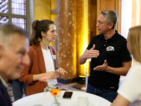 Rund 250 Menschen feiern im Roten Rathaus den Abschluss der „Gemeinsamen Sache“. Wie kann das Ehrenamt nicht nur während der Projekttage in der Stadt sichtbar bleiben?