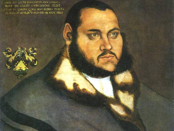 Und siehe da: Unmittelbar am Eingang wartet schon die erste verblüffende Entdeckung – Lucas Cranachs Gemälde des Berliner Hofastrologen Johannes Carion (1499–1537), der einst eine große Sintflut prophezeite. Wie gelangte die kostbare Antiquität – ihr Wert liegt im sechsstelligen Bereich – bloß hierher? Die Antwort liegt auf der Hand: Bereits 1661 schmückte das um 1530 entstandene Porträt die Säle der Churfürstlichen Bibliothek im Apothekerflügel und wurde offenbar von Generation zu Generation weitergereicht.