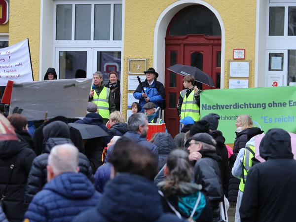Organisiert wurde die Demonstration von der Bürger-Initiative „Rettet den Ilsekiez”. „Fantastisch, mehr als bei diesem Sauwetter überhaupt zu erwarten war”, freut er sich Dietmar Stengel, Sprecher der Initiative. Neben der Bürgerinitiative kamen auch Mitglieder verschiedener Karlshorster Vereine.