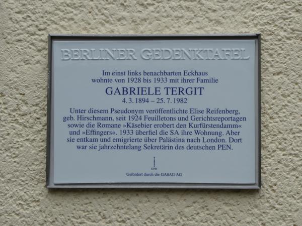 Angeregt hatte die Gedenktafel bereits 2019 die Erinnerungsinitiative „Gleis 69“. Doch der Besitzer des Nachfolgebaus von Tergits zerstörtem Wohnhaus, einem Bürokomplex, hatte kein Interesse. Im benachbarten Altbau sollte dann zunächst die Fassade saniert werden, bevor die Gedenktafel dort nun angebracht werden konnte.