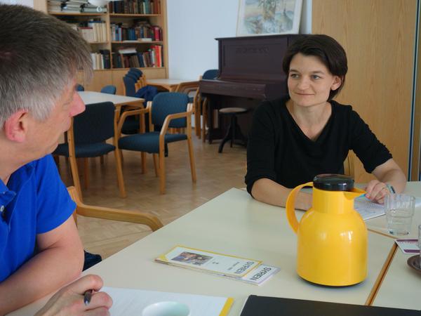 Helbig nickt zustimmend. Die studierte Erziehungswissenschaftlerin ist in Zehlendorf aufgewachsen und hat sich auf den Schwerpunkt Erwachsenenbildung und Mediation spezialisiert. Anderthalb Jahre hat sie für das Forum ziviler Friedensdienst in Bonn gearbeitet, danach unter anderem im Projekt "Über Lebenskunst" der Bundeskulturstiftung. Dann wurde sie Mutter und in ihrer Elternzeit kam die Flüchtlingsthematik auf. „Ich wollte mich sinnvoll einbringen, auch über ein Ehrenamt hinaus. Und da kam mir die Ausschreibung des ÖWW sehr gelegen.“ Ihre ehrenamtliche Vorgängerin habe ihre Aufgabe sehr professionell gemacht, aber irgendwann waren 20 Stunden Ehrenamt neben Vollzeittätigkeit und Familienleben zu viel.