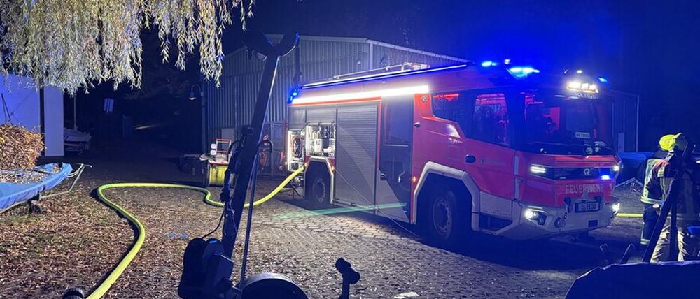 Brand am Fluss: An der Havel stand am Mittwochabend eine Gaststätte in Vollbrand. Im Verlauf des Einsatzes stürzte das Dach ein.