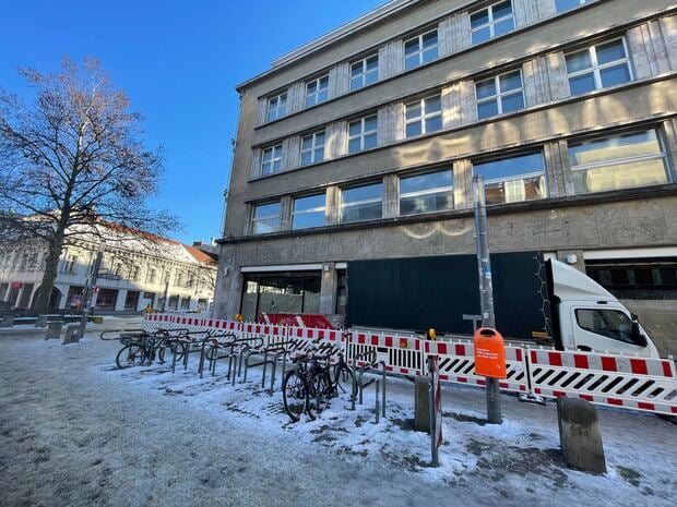Am Marktplatz in der Altstadt von Berlin-Spandau ist ein bekanntes Traditionsgeschäft ausgezogen. Die Fassade sieht jetzt noch ein Stück trister aus.