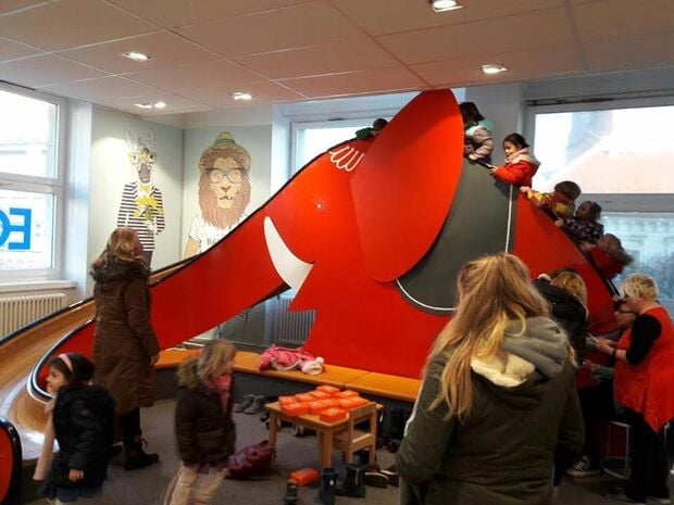 Die bekannte Kinderrutsche in Form eines roten Elefanten (stand 60 Jahre im 1. Stock bei Ega) wurde im November an eine Kita in Hakenfelde verschenkt: mehr hier im Tagesspiegel.