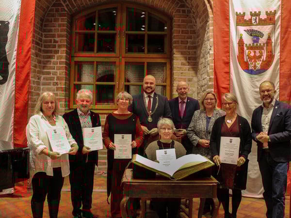 Applaus in der Zitadelle, Teil I: Spandaus Bürgermeister Frank Bewig, CDU, hat Marina Gude die höchste Auszeichnung des Bezirks verliehen („Ehrennadel“). Gude ist seit 15 Jahren die unaufgeregte Frau hinter den naturgemäß aufgeregten Cheerleadern von „United Cheer Berlin“ (gehört zum SC Staaken).