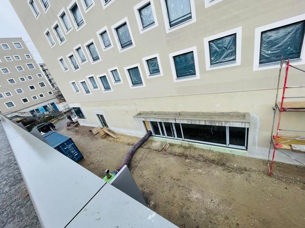 Auf dem Grundstück selbst entstehen über der Bibliothek in zwei Bauabschnitten bis zum Frühsommer 2026 etwa 350 Wohnungen.