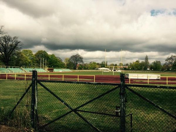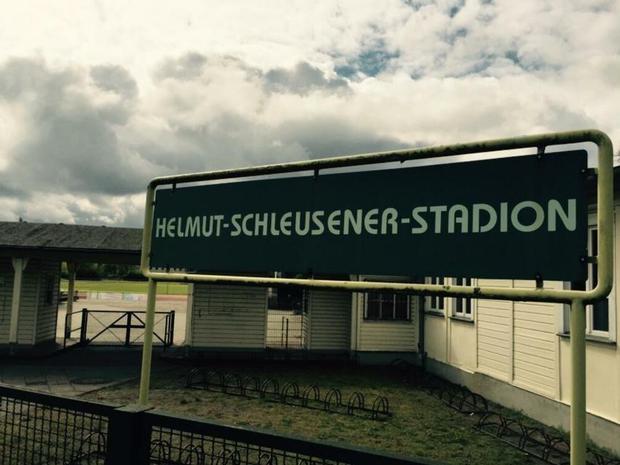 Das alte SSV-Stadion an der Havel gibt’s leider nicht mehr und wurde 1998 für Neubauten abgerissen. Hinten ist die Feuerwache an der Streitstraße Ecke Neuendorfer Straße zu erkennen.