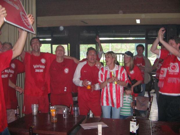 Bilder aus alten SSV-Tagen: Fans und Spieler feiern angemessen seriös im Casino. Der lieblich singende Mann ganz links war übrigens mal Hertha-Kapitän und stand im Finale des DFB-Pokals (nach „Sven Meyer“, „Hertha-Bubis“ googeln).