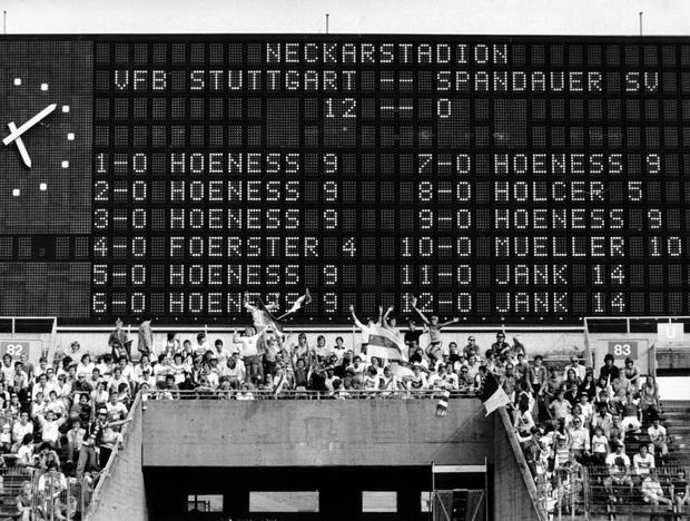 Zur Ehrenrettung: Der Spandauer SV musste damals offensichtlich in gelb-blauen Trikots im Neckarstadion spielen, deshalb gibt es auch nur ein Farbfoto.