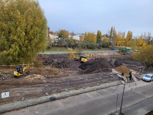 Lastwagen und Bagger in Berlin-Spandau: Was wird da im beliebten Grünzug „Bullengraben“ gebaut?