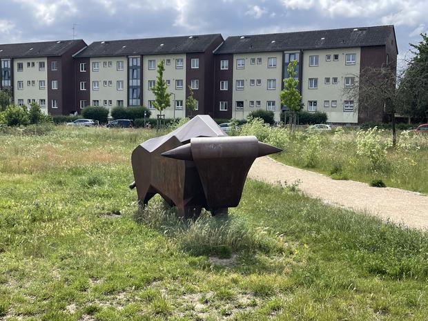 Bekanntestes Fotomotiv ist vermutlich ein prächtiges Kunstwerk, das seit 2007 am Wegesrand auf der Wiese steht. Den rostigen Bullen hat der Künstler Sebastian Kulisch erschaffen.