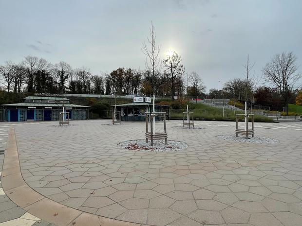 Berlins großer Ausflugshafen am Wannsee wird seit Jahren für viele Millionen Euro umgebaut. Im November 2025 ist die neue Rampe zwischen S-Bahnhof Wannsee und den Schiffen weit fortgeschritten, aber noch mit einem Bauzaun gesperrt. Am Hafenplatz sind – anders als früher – mehrere neue Bäume gepflanzt.