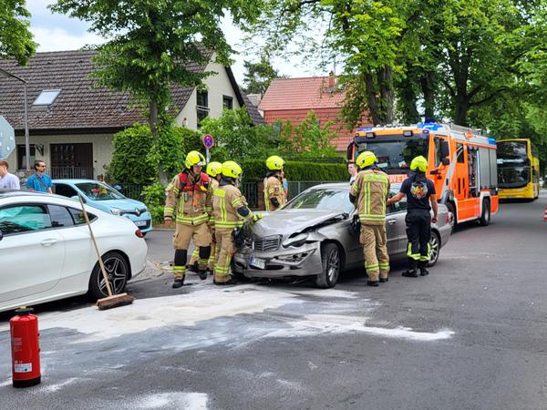 „Es gab in unserer Straße gerade einen fürchterlichen Unfall, ein Schwerverletzter, ein Schlachtfeld“, so lautete die Sprachnachricht, die Stefan Erlebach auf der Tagesspiegel-Mailbox hinterließ. An der Kreuzung Frankenhauser Straße, Ecke Tautenburger Straße sind am Mittwochnachmittag zwei Autos der Marke Mercedes kollidiert. Der Anwohner und seine Nachbarin Manuela Feike hörten erst das Quietschen, dann den Aufprall und eilten zur Unfallstelle.