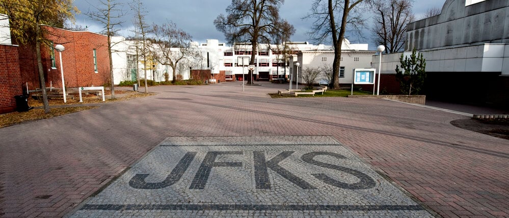 Die Überschrift des Posts auf der Website der John-F.-Kennedy-Schule (JFK) in Berlin-Zehlendorf verspricht „anstehende Baumaßnahmen“, im Text heißt es optimistisch: „Es geht los!“ Allerdings ist dieser Eintrag drei Jahre alt – und baulich geschehen ist seitdem nichts.