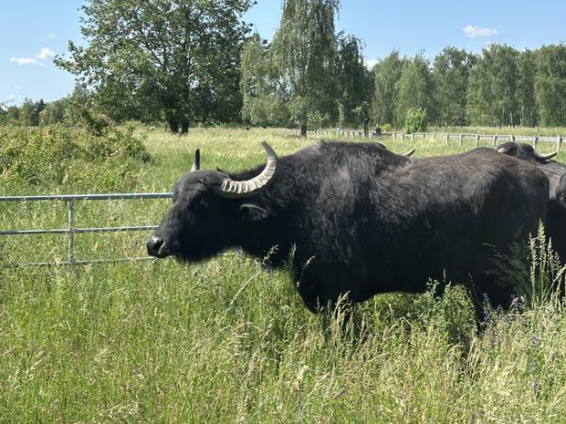 Sechs Wasserbüffel beweiden seit Anfang Juni wieder den Landschaftspark Rudow-Altglienicke im Südosten der Stadt. Zu finden sind sie nahe dem Berliner Mauerweg an der Ecke Waltersdorfer Chaussee.