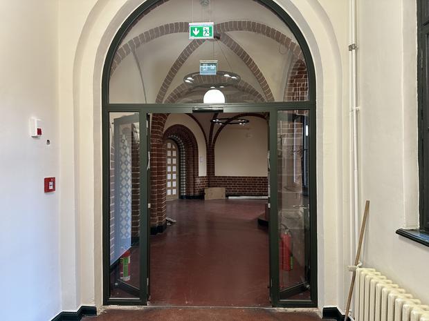 Gläserne Brandschutztüren teilen jetzt die Flure in einzelne Bereiche, ans permanente Türenöffnen und -schließen müssen sich die etwa 250 Mitarbeiter im nach drei Jahren nun fertig sanierten Rathaus Köpenick wohl erst noch gewöhnen. Auch ihre Bürotüren sind jetzt Brandschutztüren, die 90 Minuten lang den Flammen standhalten können.
