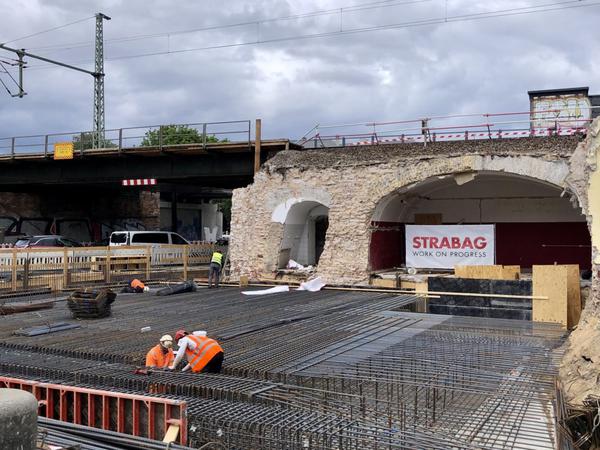 Ebenfalls betroffen von der Sperrung sind die Parkflächen unter der Brücke. Der Auto-, Fuß-, Rad- und Straßenbahnverkehr an der Edisonstraße/Treskowallee unterhalb des Bauwerks läuft normal weiter.