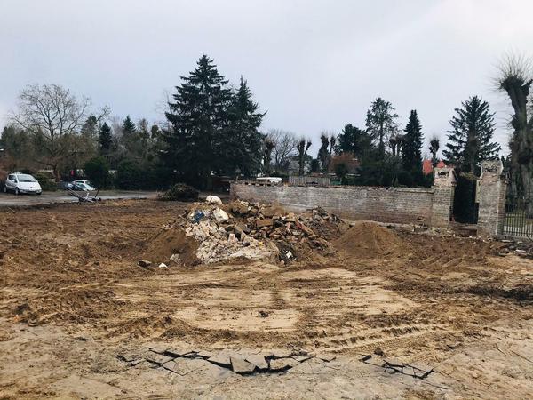 Das Loch im Dorfzentrum soll eine Kladower Zahnarztfamilie füllen, die seit 2018 ein Geschäftshaus bauen will. Jetzt wird ernst gemacht mit den Plänen. Der Zugang zum alten Friedhof dahinter soll erhalten bleiben. In Kladow spielen sich bei Bestattungen oft ungewöhnliche Szenen für Berliner Verhältnisse ab: Denn die Trauergemeinde zieht von der Kirche einmal schweigend durch den Dorfkern - die Polizei sperrt dafür die Straßen, sogar die wichtigen Linien der BVG kommen dann zum Erliegen. Hier hat Pfarrer Nicolas Budde das mal so Spandau-Newsletter beschrieben: