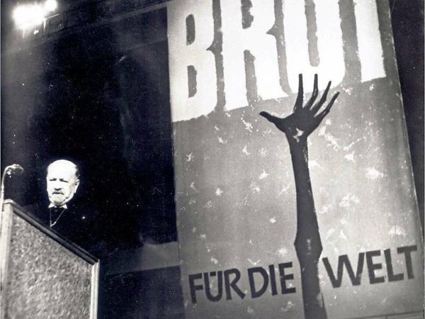 Seither wird immer am 1. Advent traditionell die neue Spendenaktion eröffnet – bundesweit und mit vielen regionalen und lokalen Gottesdiensten –, in diesem Jahr zum 60. Mal. Und alles erscheint so aktuell wie zuvor, als bei der Veranstaltung 1959 Otto Dibelius, damals evangelischer Bischof in Berlin-Brandenburg und Ratsvorsitzender der Evangelischen Kirche in Deutschland (EKD), sowie Helmut Gollwitzer, Theologieprofessor an der Freien Universität in Berlin, zu den Berlinerinnen und Berlinern sprechen. 14 Jahre nach Kriegsende rufen sie die evangelischen Christen in Deutschland auf, über den eigenen Tellerrand zu blicken: „Die halben Fortschritte, die die europäische Zivilisation den Völkern Asiens, Afrikas und Südamerikas gebracht hat, die Hygiene, die Bekämpfung von Seuchen, die Verminderung der Geburtensterblichkeit, sind das Verderben jener Völker, solange sie nicht zu ganzen Fortschritten werden, solange nicht die vermehrt am Leben bleibenden Menschen auch Arbeitsplätze zum Brotverdienst erhalten, solange nicht die Produktion von Nahrungsmitteln erhöht wird, solange dafür nicht genügendes Kapital, ein Stamm von Fachkräften und veränderte Lebenseinstellung gegeben ist.“