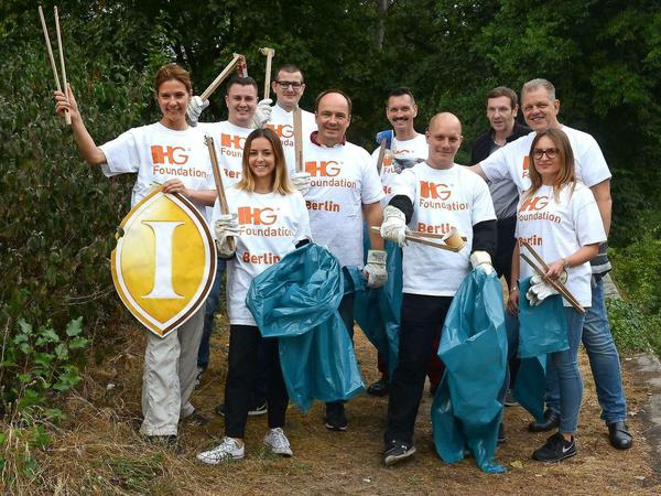 Gleich neben dem „Intercontinental“ an der Budapester Straße verläuft der Landwehrkanal, in der Sackgasse des Katharina-Heinroth-Ufers liegt der Personaleingang des luxuriösen Hotels. Und dort war am Freitag der Treffpunkt für einige Angestellte, die Gebüsche an beiden Ufern des Kanals säuberten. Den unerfreulichsten Fund machte der Technikchef des Hauses, Kai Genée: Mit seiner Holzzange barg er eine gebrauchte Heroinspritze. Schon seit fünf Jahren reinige man auch den Olof-Palme-Platz vor dem Zoo-Aquarium, sagte Hotelsprecherin Christiane Reisberger. Der Aktionstag wurde verbunden mit einer eigenen Aktion „Giving for good“, bei der alle Mitarbeiter der Hotelgruppe im September eine gute Tat vollbringen sollen. Jede davon belohnt das Unternehmen, indem es vier Dollar für wohltätige Zwecke spendet. Das Berliner Hotel ist regelmäßig auch auf andere Weise sozial tätig, zum Beispiel in der Obdachlosenhilfe.