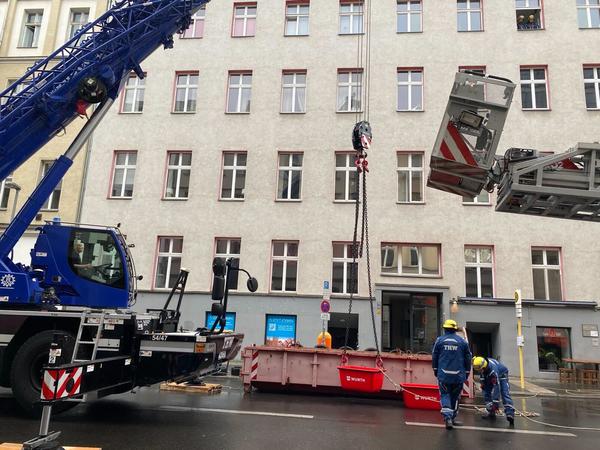 Auch wurde die Straßensperrung bis auf Ausnahme des Fußgängertunnels aufgehoben, wie das Bezirksamt mitteilte. Dieser musste auf dem Gehweg vor dem Haus aufgestellt werden, damit die Bewohner sicher ins Haus kommen und die Fußgänger den Gehweg vor dem Haus nutzen können.