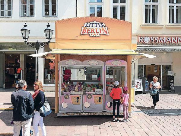 Wie auch der zweite Blickfang, der auf dem Lüneburger Volksfest die Hauptstadt im Namen trägt: Ein Greifautomat namens „Little Berlin“. Die goldlackierte Kiste mit den vielen blinkenden Lichtern und großen Glasscheiben zieht vor allem die Jüngeren an. Hinter den Glasscheiben liegen knallbunte Einhörner, kostümierte Superhelden und andere Stoff-Figuren. Immer wenn eine Münze in den Automaten gesteckt wird, kann der Besucher die Greifarme darüber bewegen, sich eines der Stofftiere schnappen und in Richtung Ausgabeschacht heben. Doch im letzten Moment lässt der Greifarm den ersehnten Gewinn jedes Mal wieder fallen, ausnahmslos.