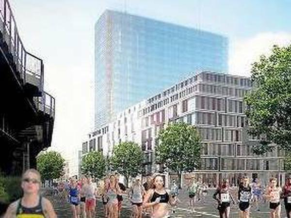 Erfreulich für Lüscher ist aber vor allem, dass der Bauherr sich der Kritik in ihrem Baukollegium stellte und „Geld in die Hand nahm“ für Korrekturen an dem Entwurf von Architekt Christoph Langhof. Der zeichnet mit den Konturen des Gebäudes zwei Wellen nach, wobei der obere Teil des Hochhauses ein Metallkleid bekommt. Auf Einwirken des Baukollegiums werden die L-förmigen Fassadenelemente nicht aus zwei Segmenten zusammengesetzt, sondern aus einem Guss. „Ohne Fuge verstärkt das die plastische Wirkung“, sagt Lüscher. Das Upper West soll gemeinsam mit dem bereits errichteten Zoo-Fenster das „Tor“ zum Eingang in die City West symbolisieren.