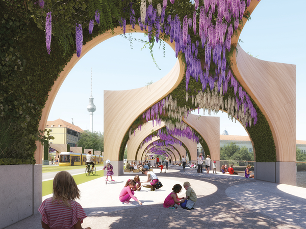Gewiss: Die Treppen hinunter zum Park am Spreeufer auf der Fischerinsel sind zu begrüßen. Auch die direkte Anbindung an die Uferpromenade, die der gemeinsame Entwurf des Berliner Ingenieurbüros Arup Deutschland GmbH und der Architekten von COBE A/S aus Kopenhagen vorsieht, ist ein Gewinn für Fußgänger:innen. Und doch sind die Pläne in vielerlei Hinsicht eine vergebene Chance.