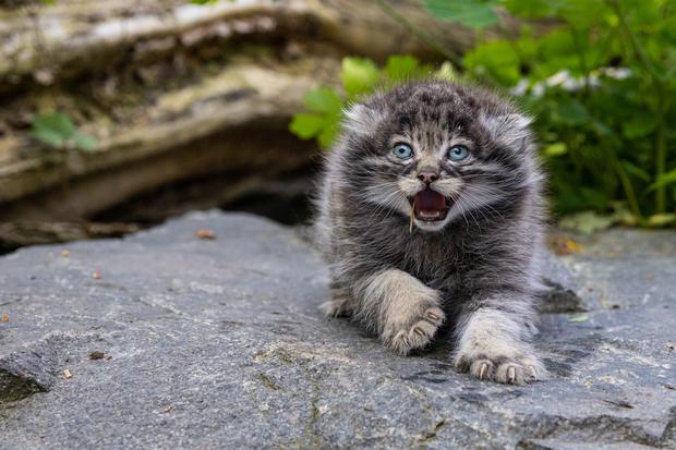 Normalerweise sind die Wildkatzen in Zentralasien heimisch, die vier hiesigen Manul-Babys bewiesen aber schon beim ersten Tierarztcheck Berliner Schnauze. Miau!